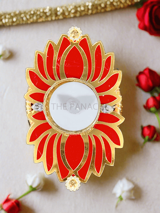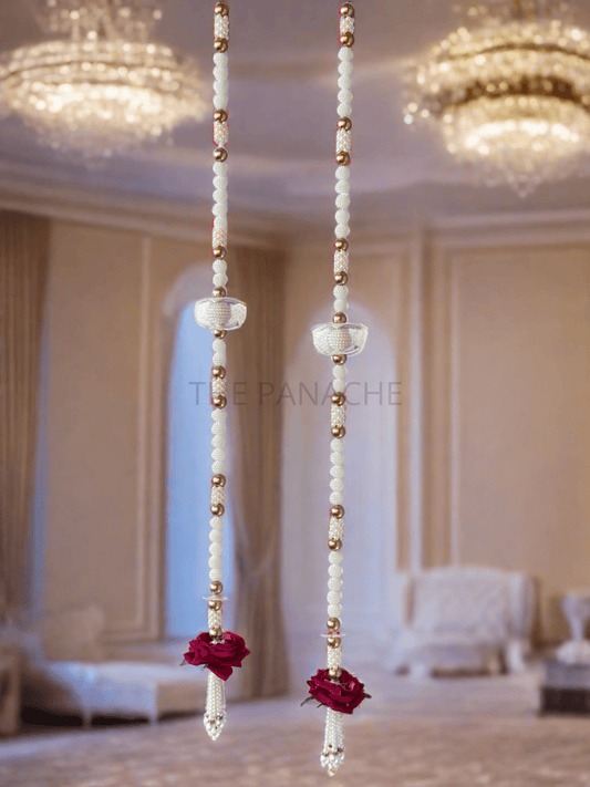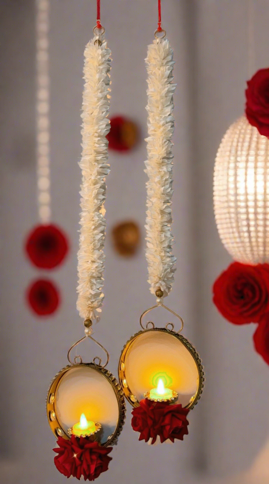 Red Rose Metal Lamp Kundan Studded White Hangings