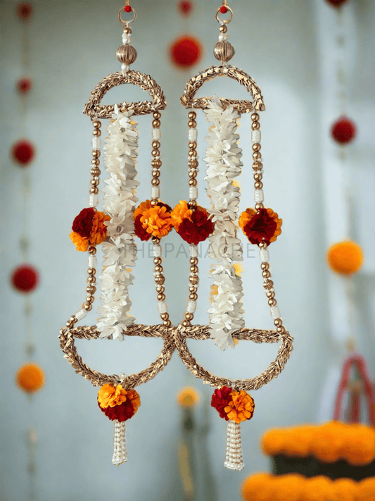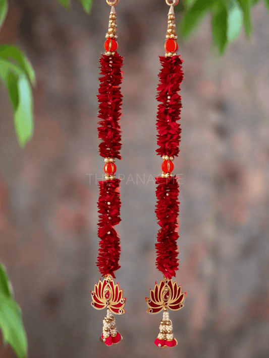 Red Rose Pearl Gold Beads Toran with Jumkha Hangings