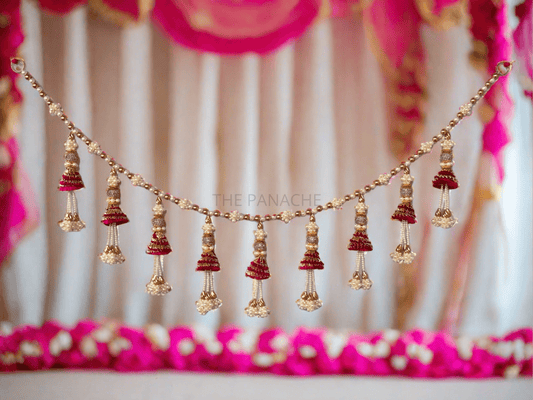 Red Con Pearl & Gold Beads Toran