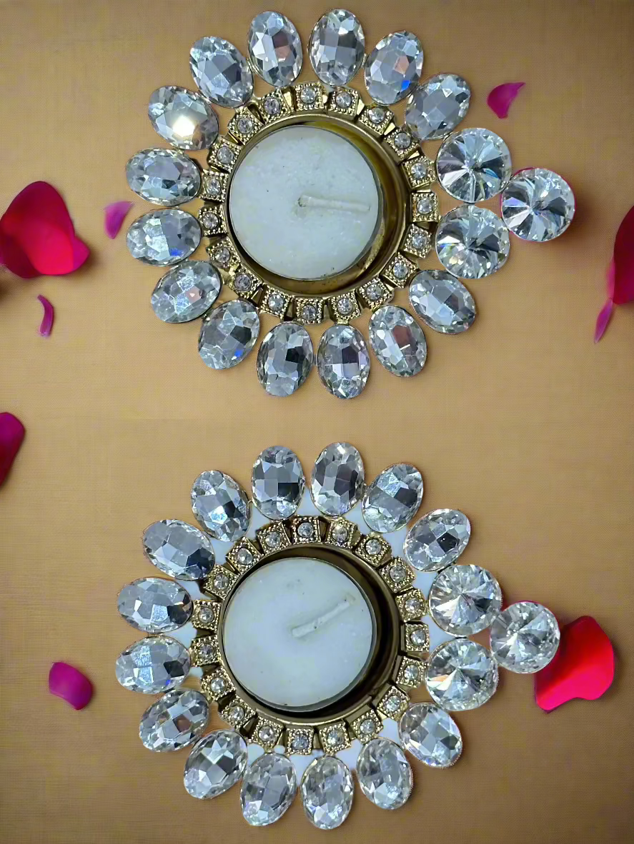 Whether you're celebrating a special occasion, looking for a unique gift, or simply adding a touch of elegance to your home decor, these versatile Crystal (Kundan) Stone Diyas Holders are the perfect choice to create a serene and radiant ambiance