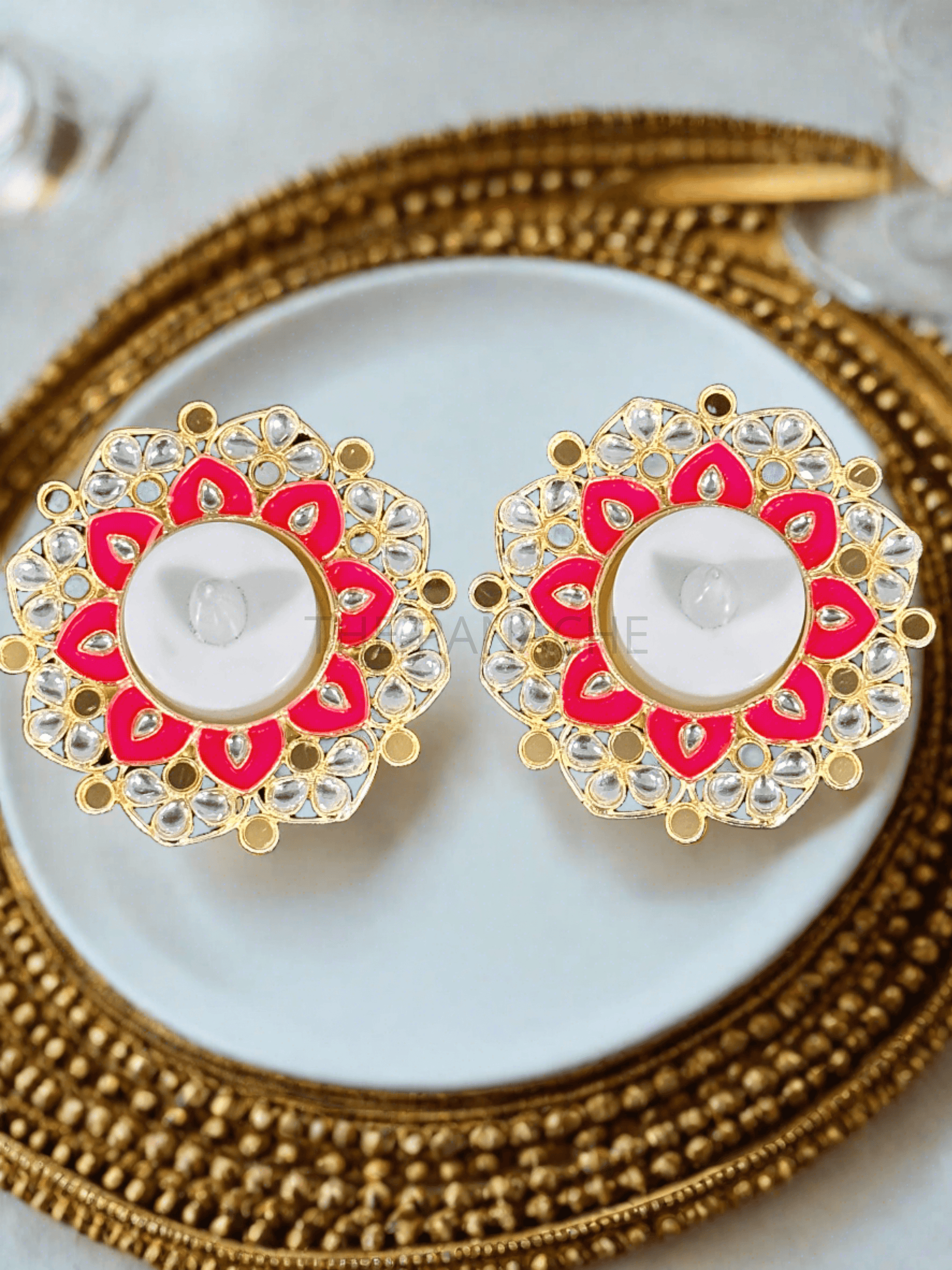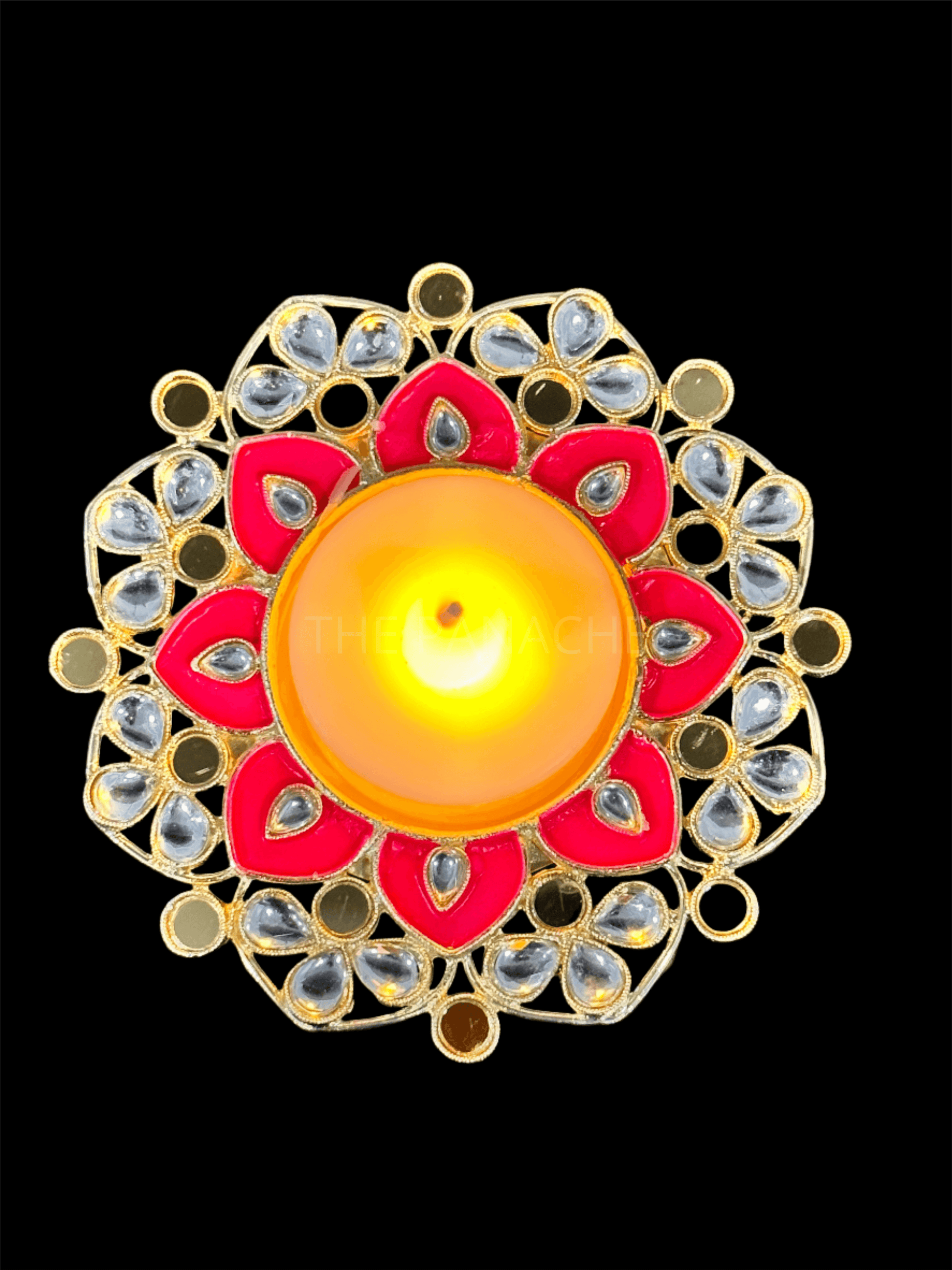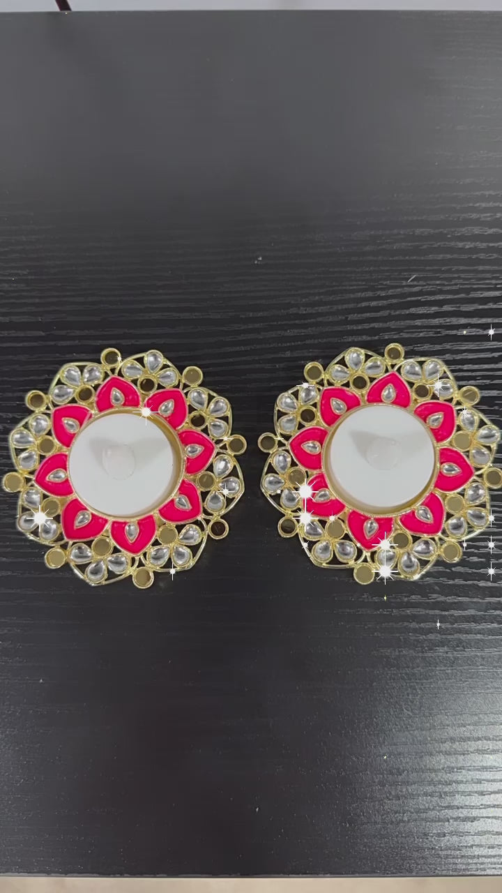 Dark pink kundan-studded candles sound like an exquisite addition to any décor. Kundan refers to traditional Indian gemstone embellishments, often used in jewelry and decorative items. The combination of dark pink and kundan suggests a rich, opulent aesthetic, perfect for adding a touch of elegance and warmth to any space.