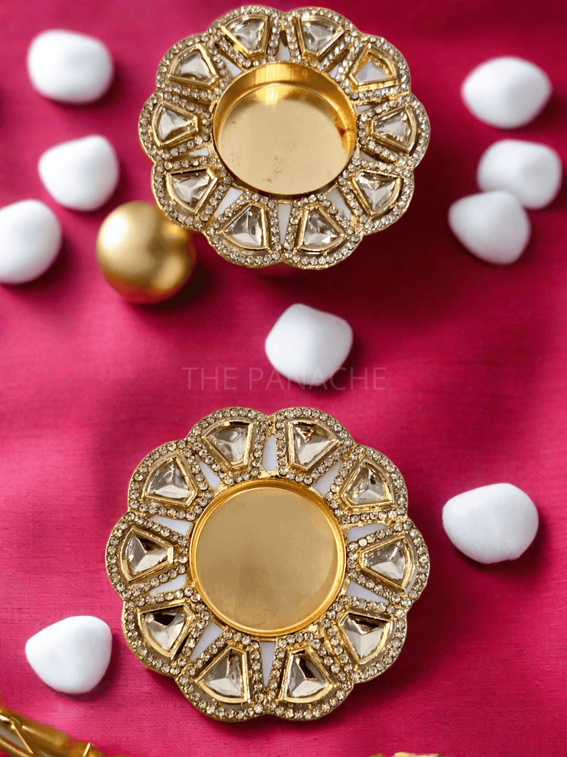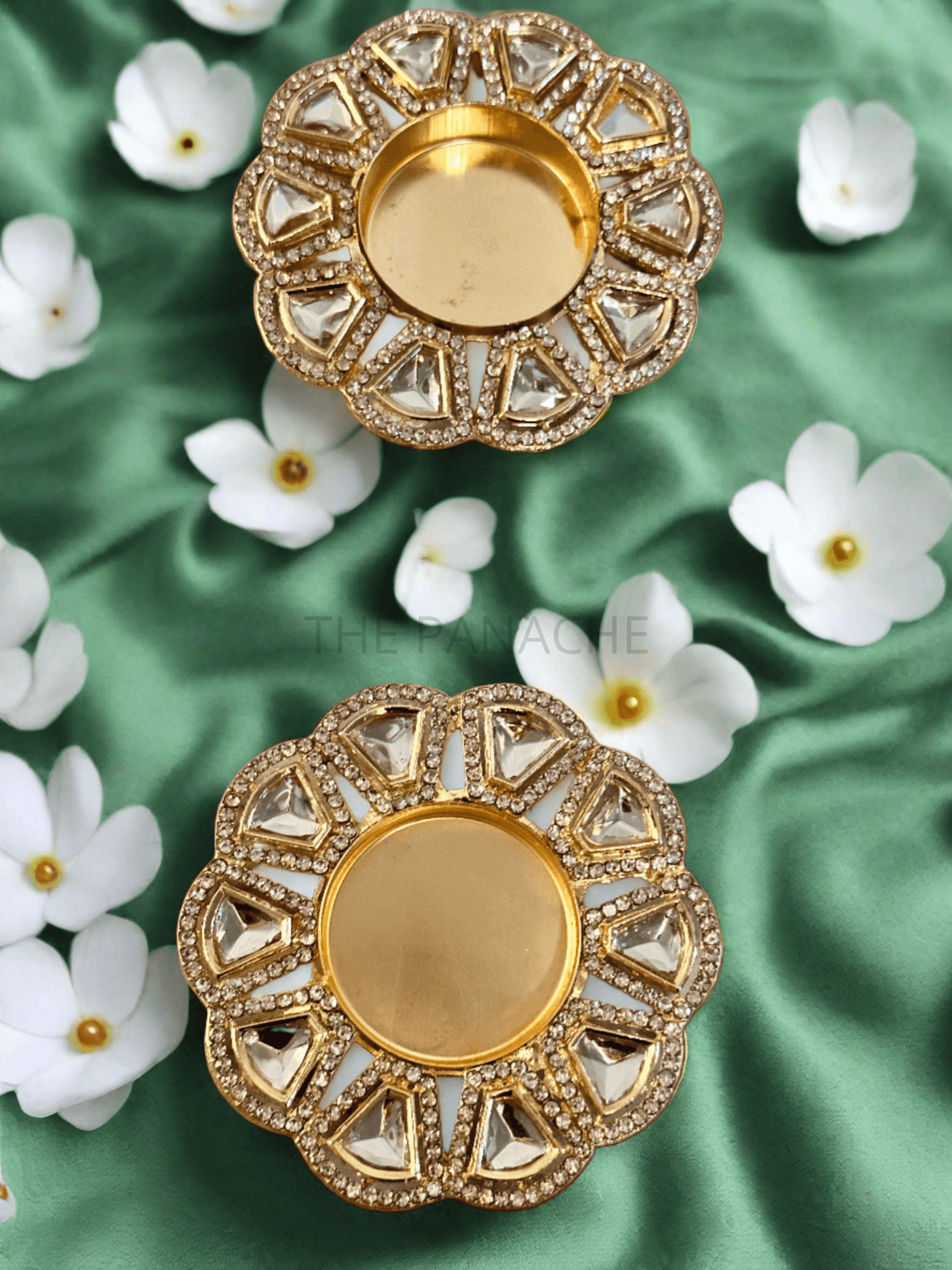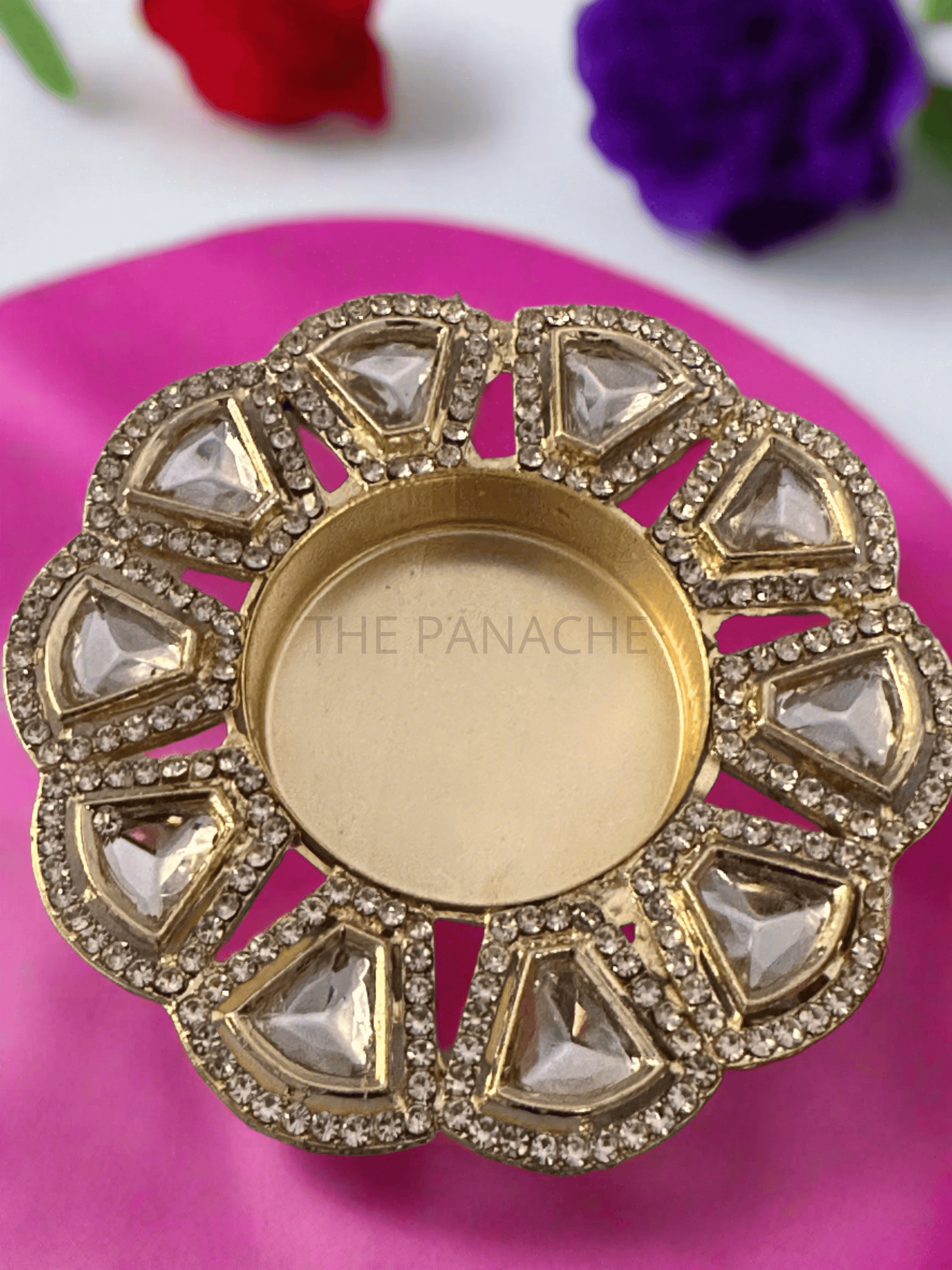 The combination of diamonds and kundan adds depth and texture to the candles, creating a visually stunning display that catches the eye from every angle. Whether for a special event or simply to indulge in a moment of luxury, candles adorned with small studded diamonds and kundan are sure to make a statement and leave a lasting impression.