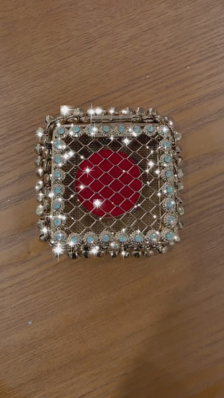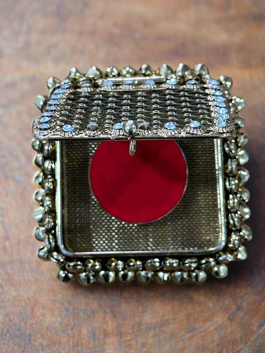 The Square Ghungroo Coin Box beautifully combines traditional charm with functional design. Adorned with small ghungroos (Indian bells), this square-shaped box not only adds a festive touch but also produces a gentle jingling sound, enhancing the atmosphere of positivity and celebration. Its lively appeal makes it an ideal accessory for festive occasions, religious ceremonies, or as a stylish storage solution for coins and small keepsakes.