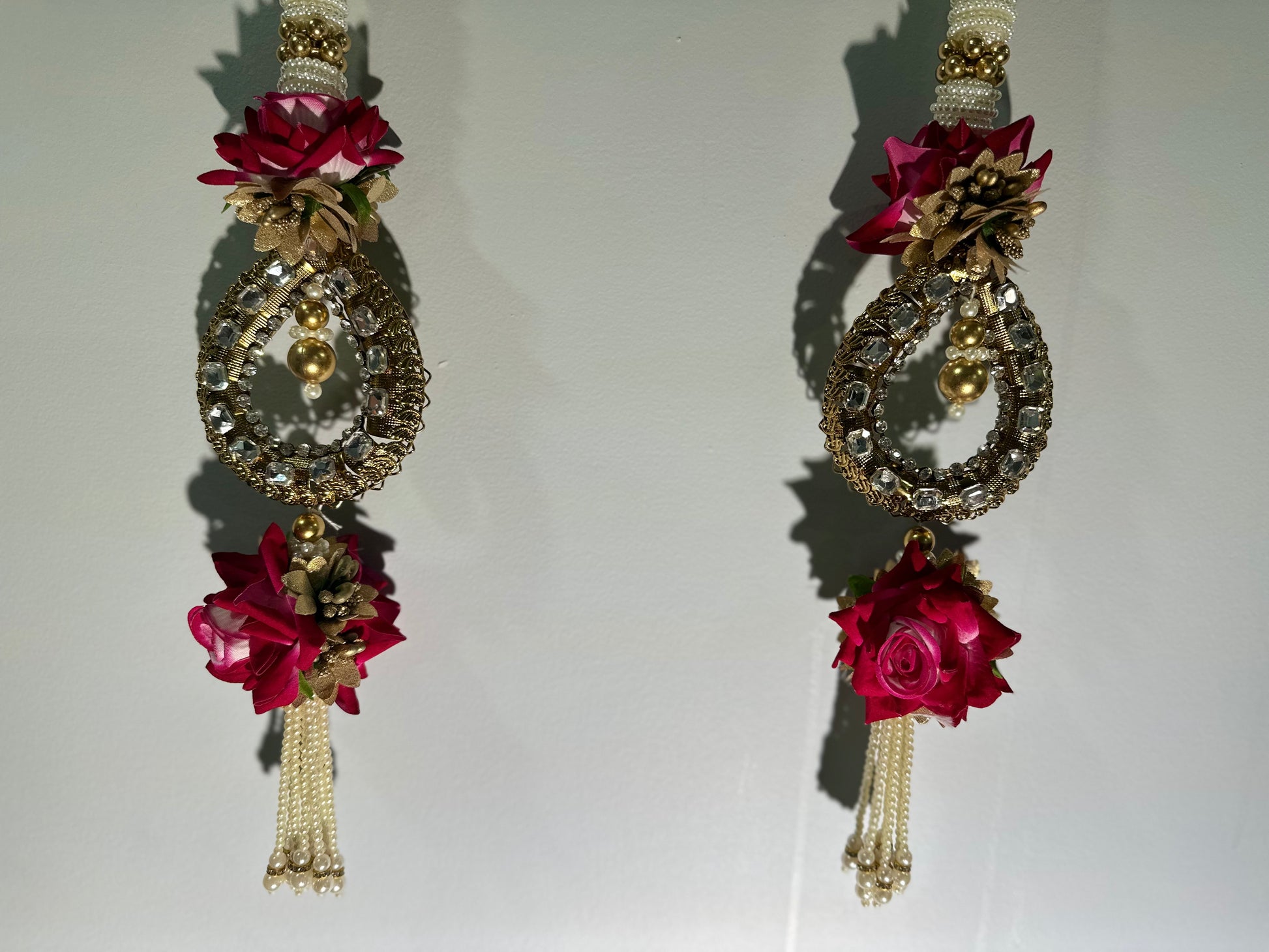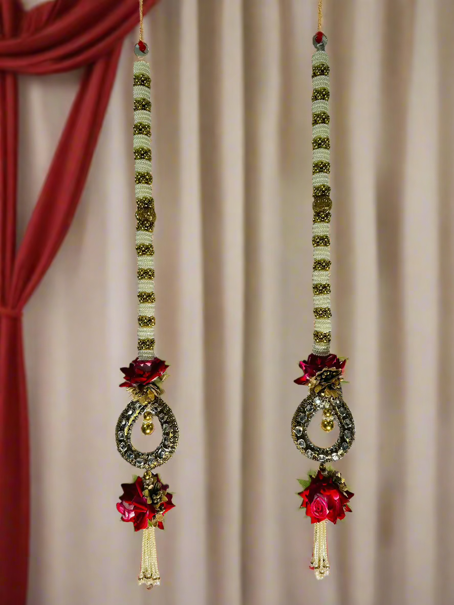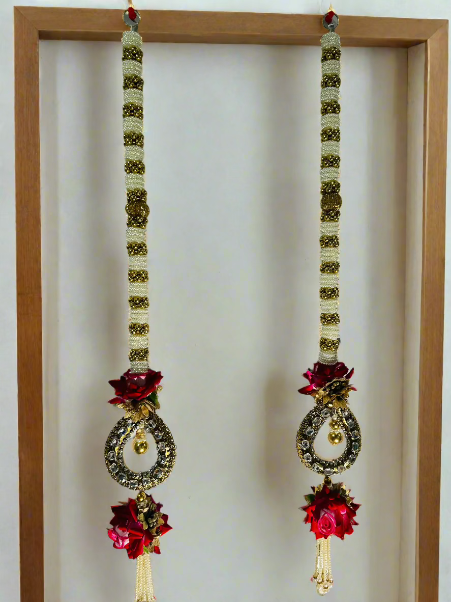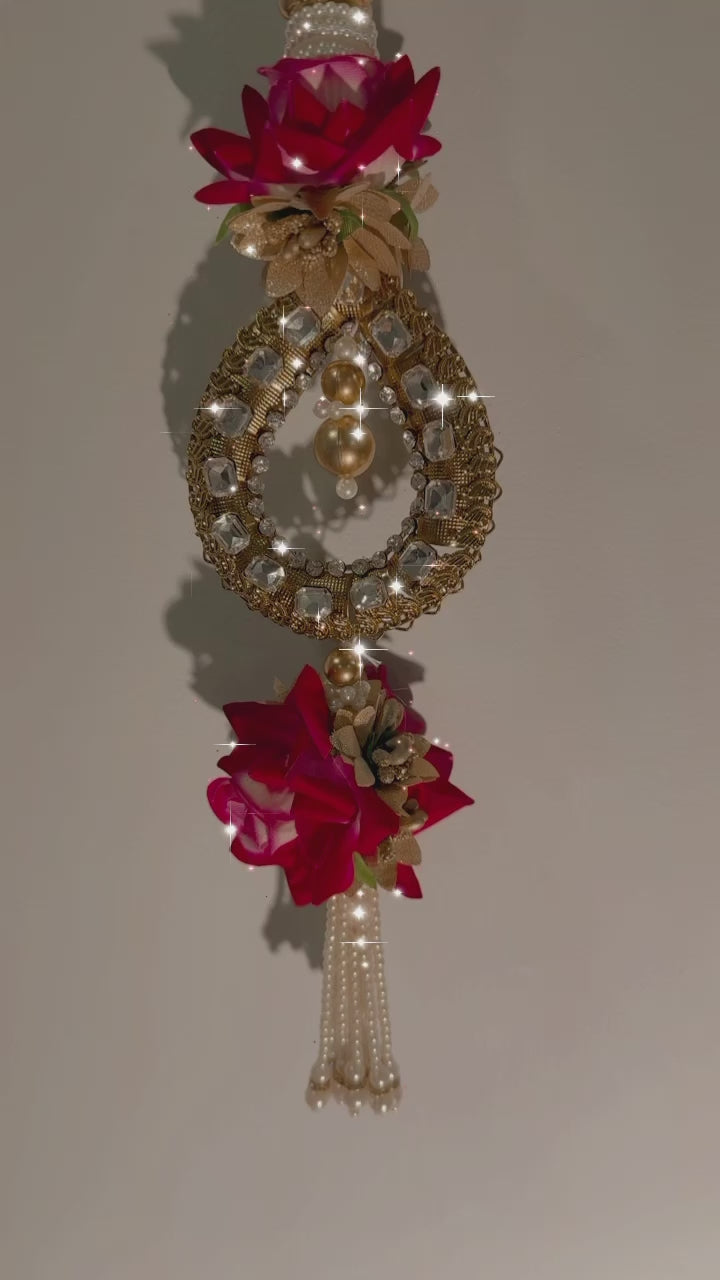 This hanging is ideal for festive occasions such as Navratri, Diwali, weddings, and other traditional celebrations. It can be used to decorate doorways, walls, windows, or even altars, symbolizing love, beauty, and prosperity. The bold red roses, combined with the intricate detailing, add a touch of elegance and festivity to any setting, making it a stunning addition to your home décor.