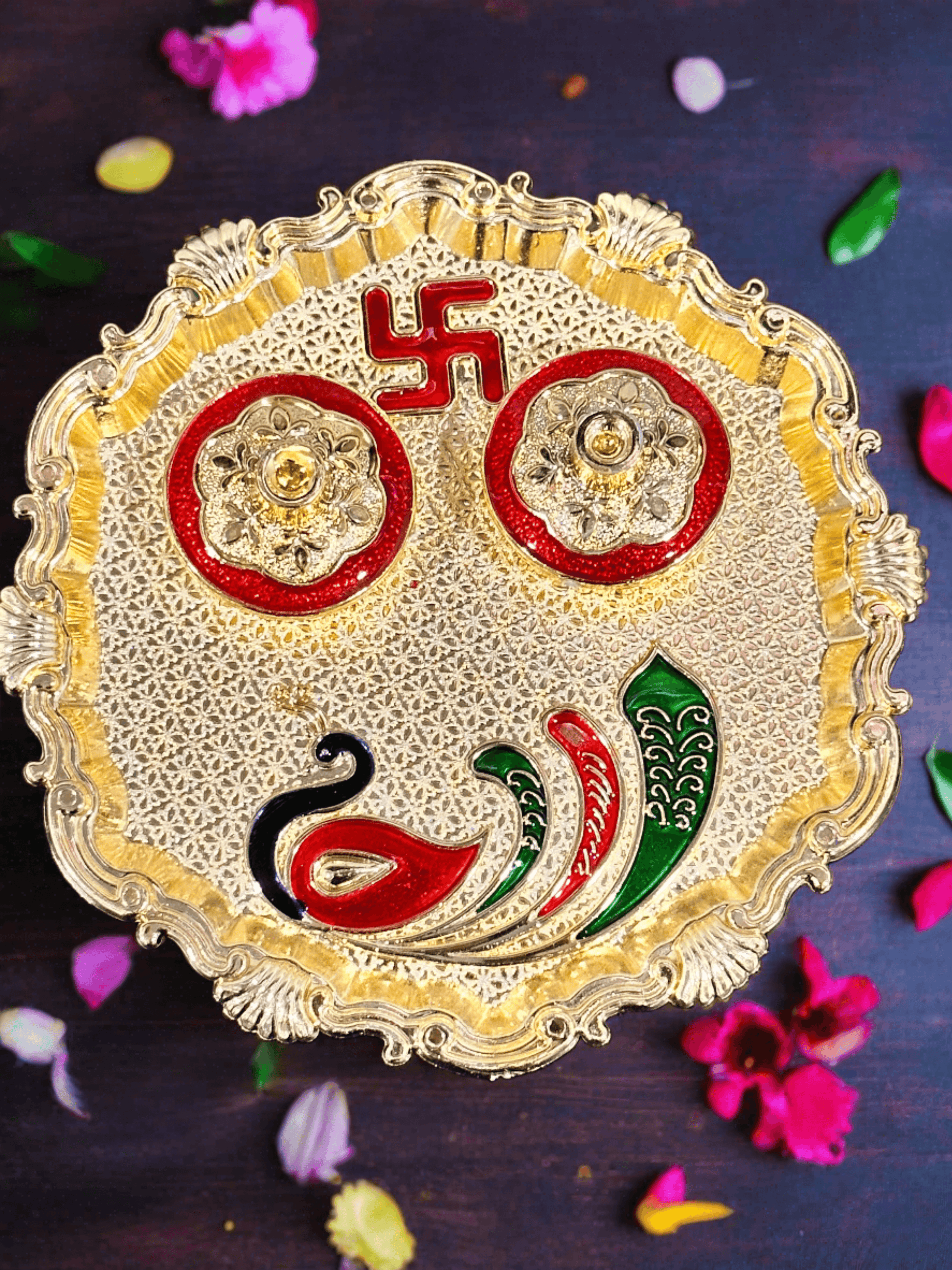 As the kankavati gleams in the light, its golden hue radiates warmth and prosperity, infusing the space with a sense of luxury and abundance. Whether displayed as a centerpiece on a dining table, on a mantelpiece, or in a sacred space, it serves as a symbol of blessings and auspiciousness.