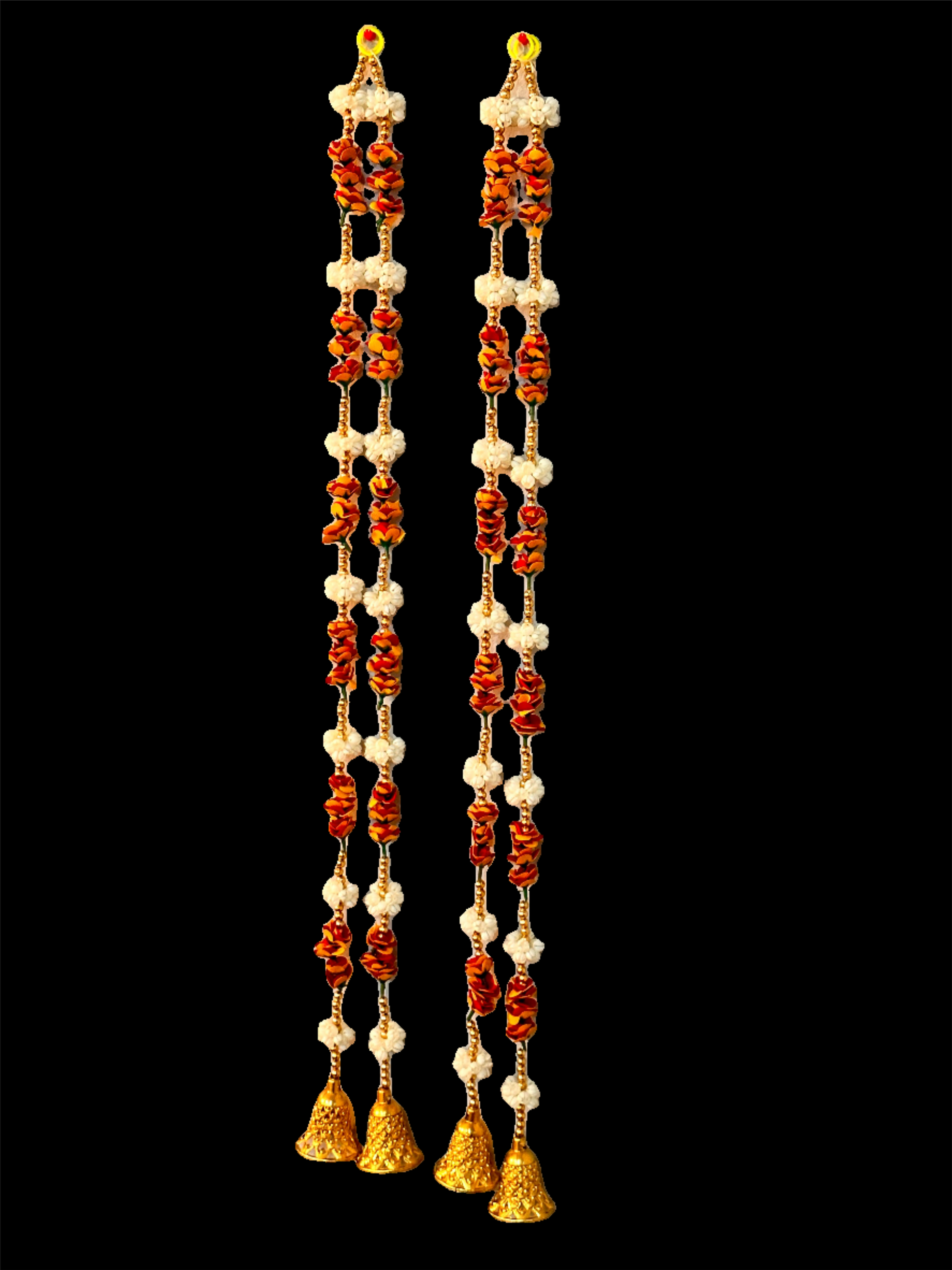 As the white mogra, red and yellow flowers with gold beads, and golden bells hanging sway gently in the breeze, they become a radiant symbol of beauty, abundance, and celebration, enhancing the atmosphere with their vibrant presence. Whether displayed indoors or outdoors, they captivate the hearts of all who behold them, leaving a lasting impression of elegance and grandeur.