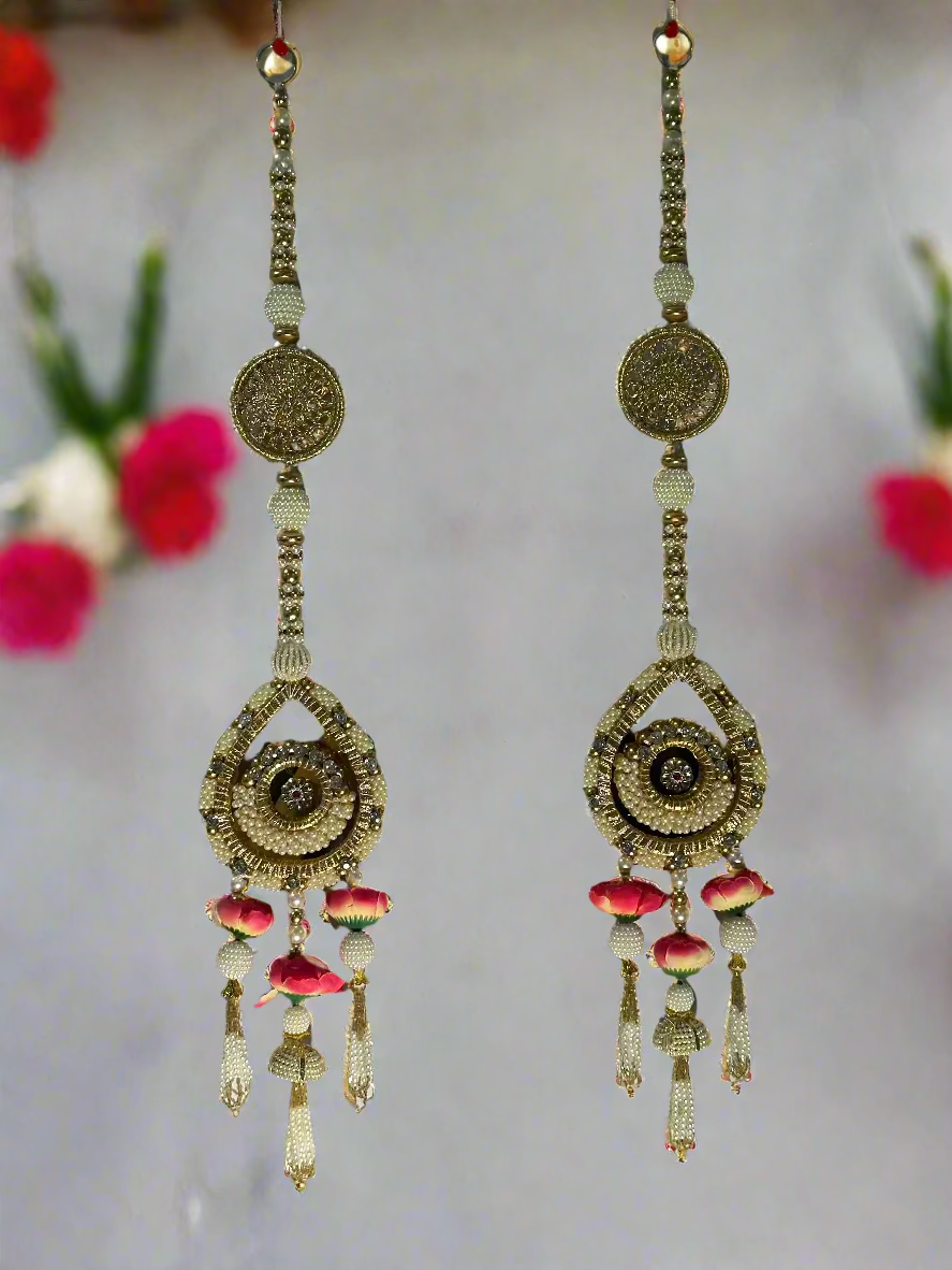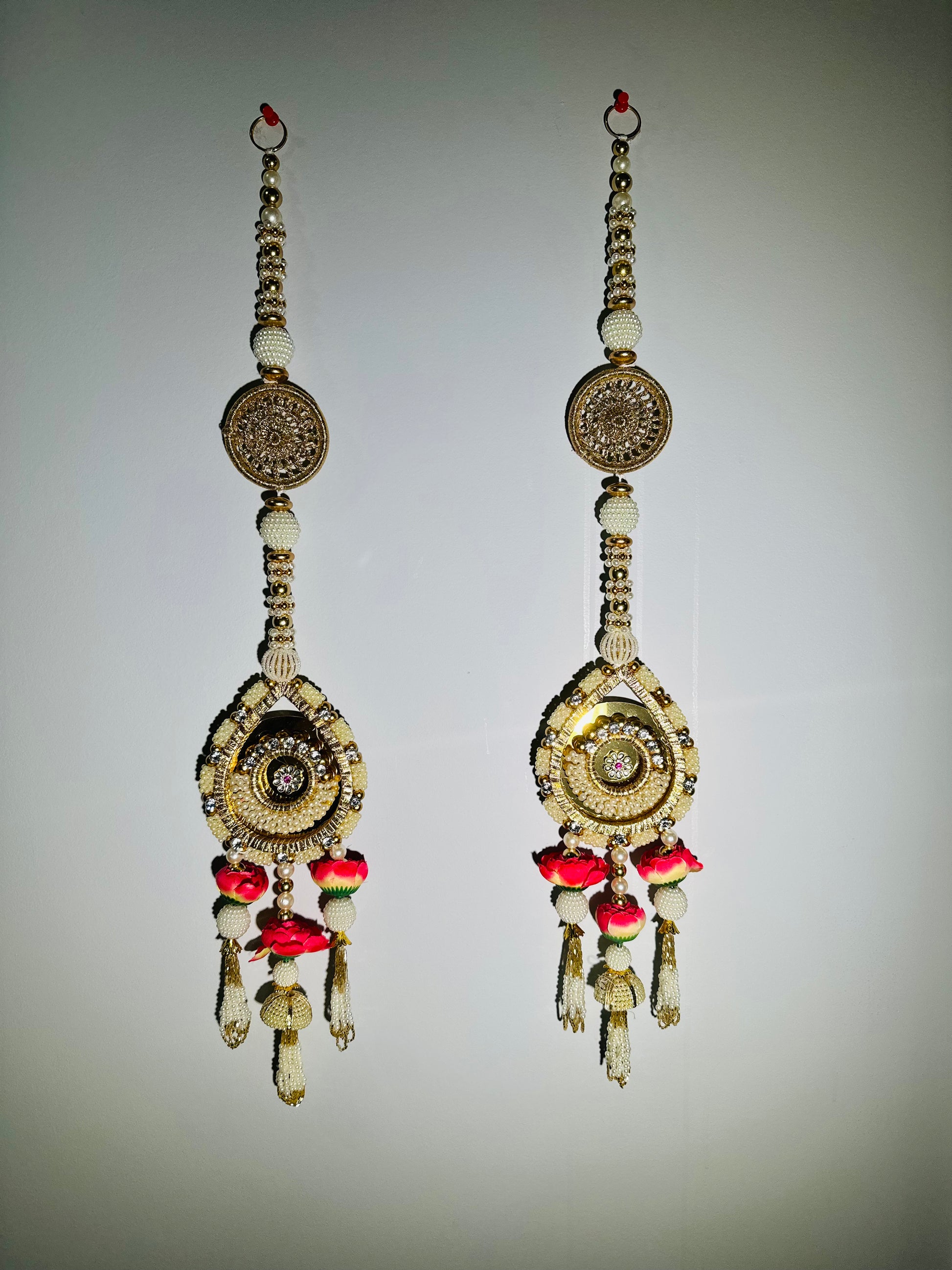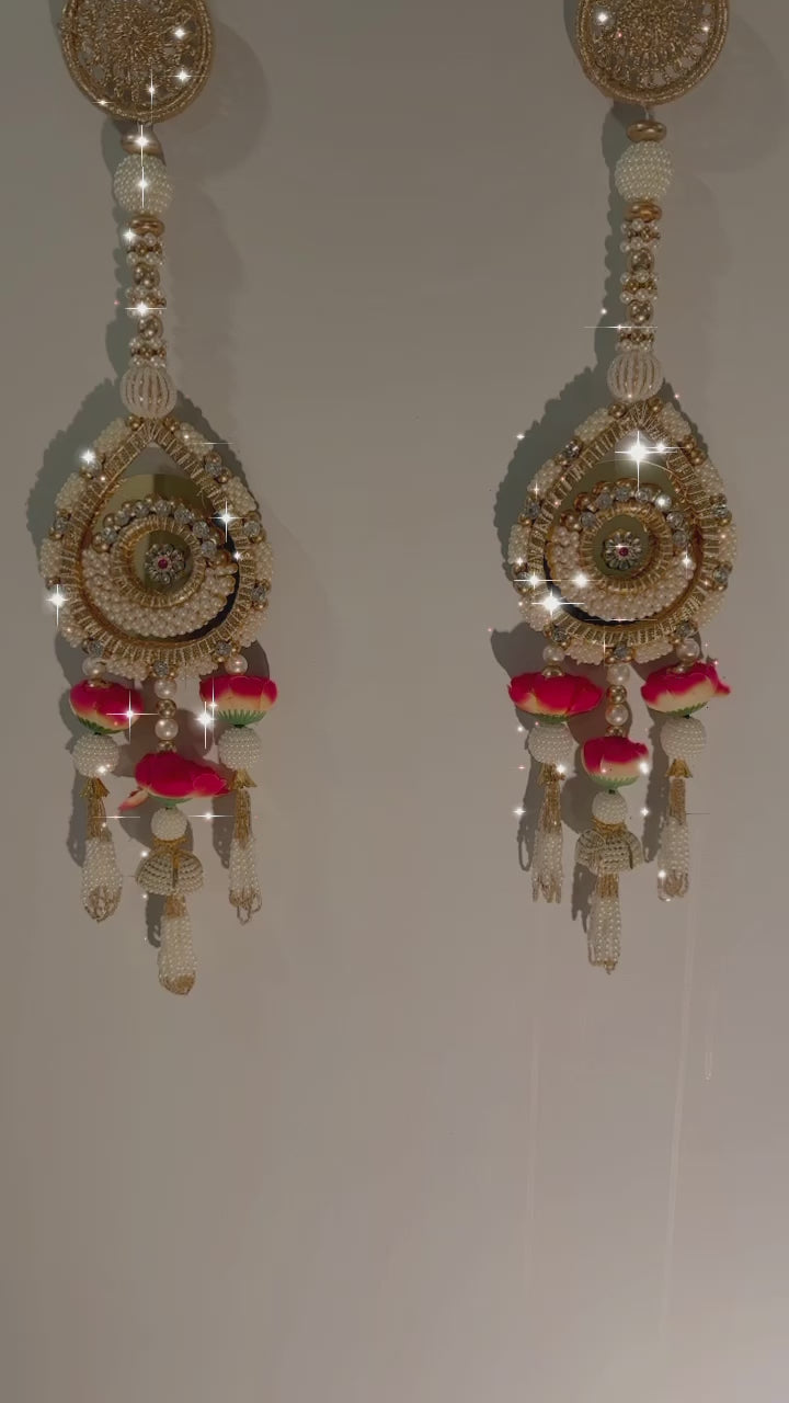Perfect for festive occasions such as Diwali, Navratri, or weddings, this hanging can be suspended from doorways, windows, or used as part of a centerpiece to create a warm and inviting atmosphere. The pink flowers symbolize love and joy, while the pearls represent purity and grace, making this decorative piece an ideal choice for adding a touch of charm and elegance to your home décor during celebrations.