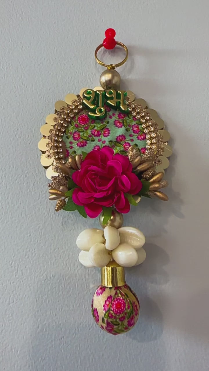 Visualize sparkling crystal hangings gracefully suspended from the Subh Labh motifs, creating a mesmerizing display of light and reflection. The crystals add a touch of glamour and sophistication, elevating the ambiance of any space with their radiant sparkle.